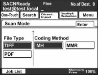 You can now proceed to 10 or, to select the file format and encoding method, touch [Scan Mode].