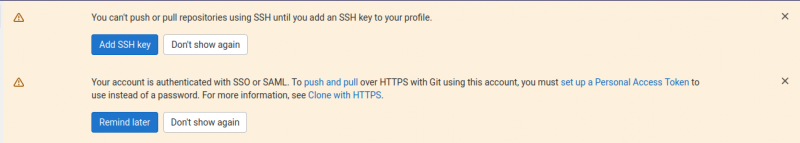 IL users that do not set up SSH key-pairs or Access Tokens will likely receive upon login a warning message like the one in the figure below
