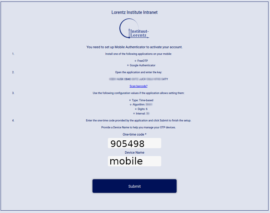 Figure 4: TOTP generation KeePassXC and final 2FA setup on the Lorentz Institute Identity Provider