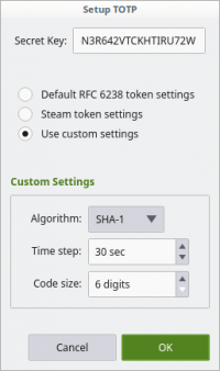Figure 3: TOTP Setup with KeePassXC. Use the TOTP settings described in Step 2.