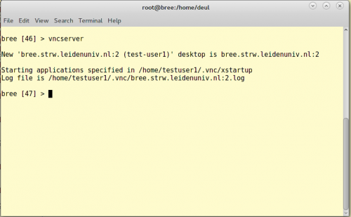 5. To use this tunnel, log into your machine with Putty. Once logged in you need to start a vncserver on the remote machine. It will respond with the display number: