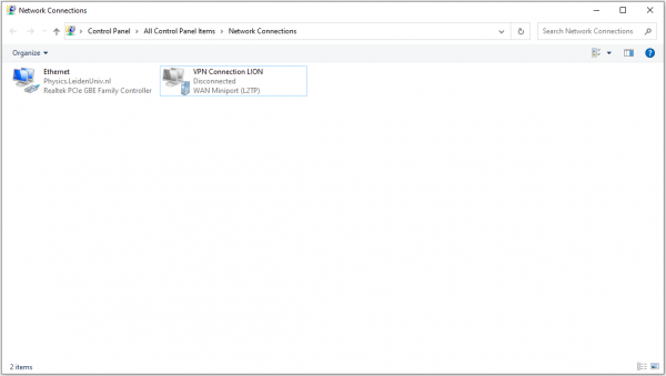 Right click the name of your: VPN Connection LION, LION-VPN, Universiteit Leiden and select Properties