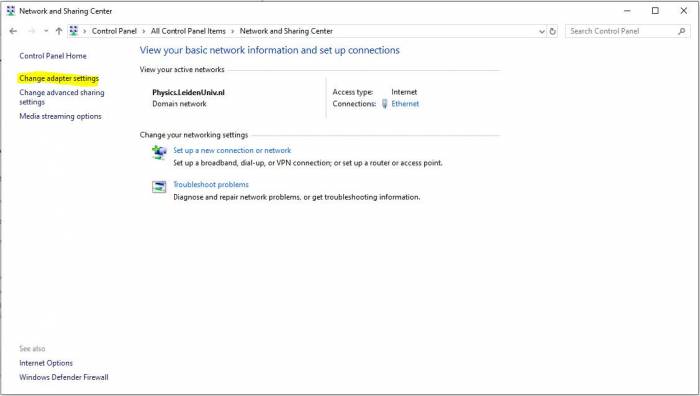 Click on “Change adapter settings”