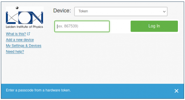 Select the Token and pres the 'Enter a Passcode' button. Then enter the 6 digit code from your TOTP App. Do not mind the blue bar message about a Hardware token, that is a side effect of this specialized setup.