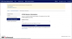* To reconnect to your running virtual workstation you login again on the virtual desktop server. In the Dashboard you will see your running virtual Workstation still active. To connect to that running virtual workstation, press the blue bar with the text Launch STRW Normal/Medium/Large Workstation. This will open a new tab in your browser with a graphical interface to the server putting you back where you left off.