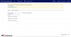 * After logging in, you see the dashboard (see image on the right). The dashboard provides various options. Here you can select the virtual workstation you would like to run (see below), they are listed on the left side of the page and under the button Interactive Apps. Already running sessions are also displayed on this page. Note that only one virtual workstation per user can be run at the same time.
