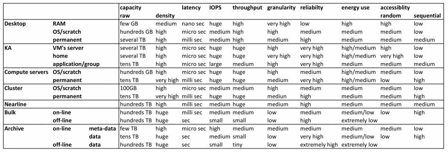 Science data intermediate products: While performing scientific analysis many intermediate products are created. These products can always (at certain costs) be recreated from the original data and associated software/scripts. This type of data can be denoted as scratch data for which low reliability hold.
