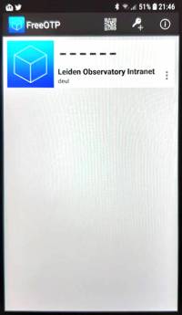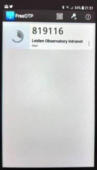 Once you scanned the QR code you get an identity block on your smart phone screen indicating the Observatory Identity server and your username, in this case we show the FreeOTP APP: