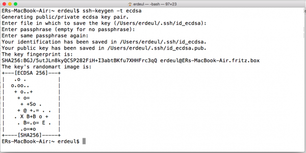 The procedure is very similar to the Linux procedure. So we first need to build a public/private keypair using the ssh-keygen utility: